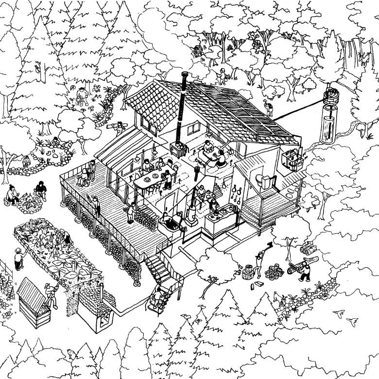 栗生山荘は、既設のライフラインから自律した、地球と循環する生存システムを実験的に作ろうとしています。